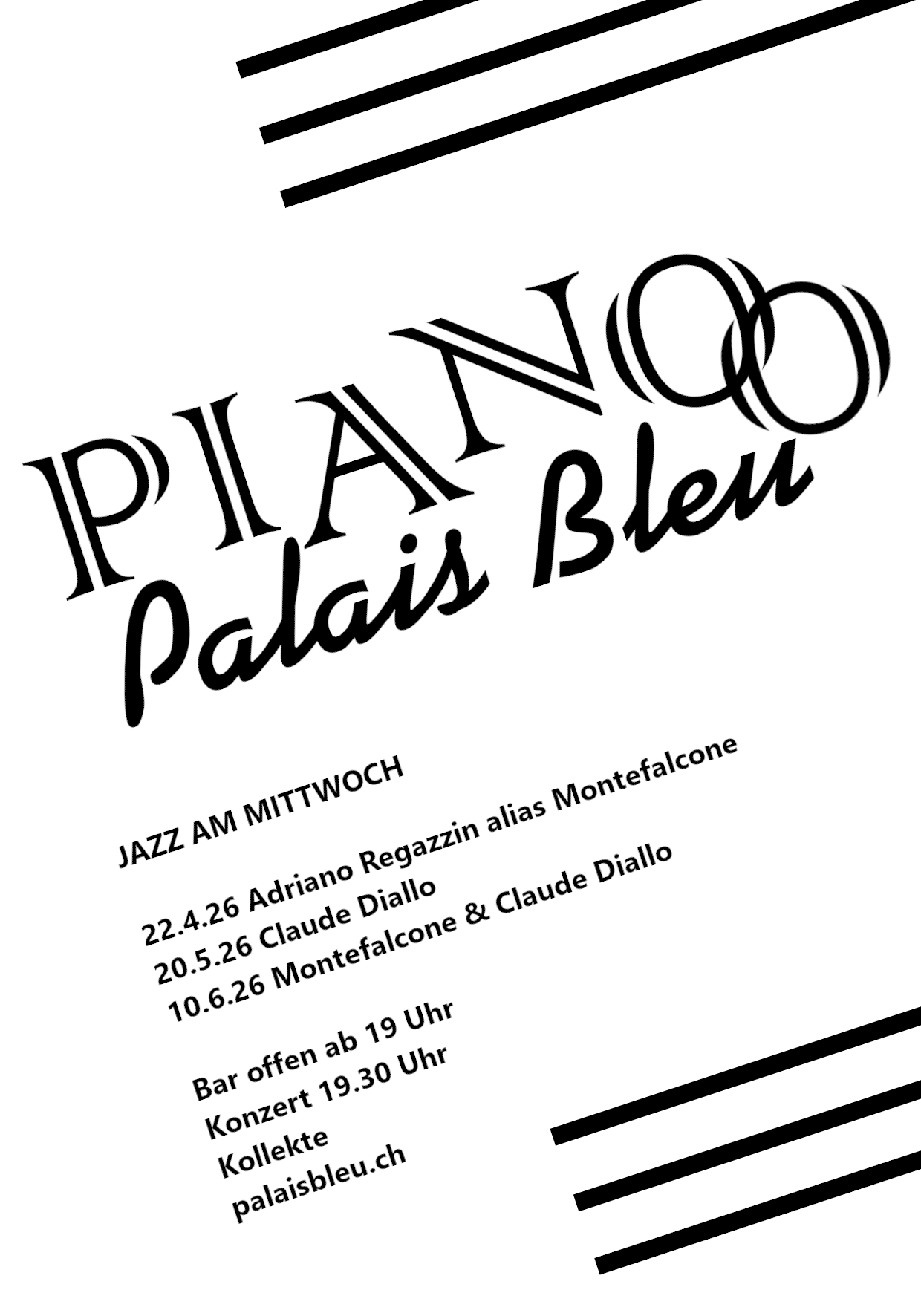Join the new solo piano series PIANO O PALAIS BLEU in Trogen at Palais Bleu. This three part series happening on a Wednesday presents the two pianists Adriano Regazzin alias Montefalcone and Claude Diallo.