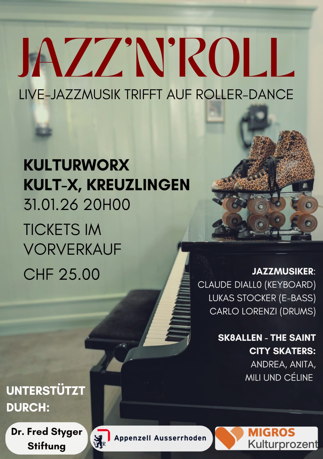 Das Projekt vereint choreografierte Skating-Sequenzen, spontane Tanzeinlagen und live gespielte Jazzmusik – darunter Originalkompositionen von Claude Diallo und Carlo Lorenzi sowie ausgewählte Jazz-Standards. Die Musik entsteht im Moment – genau wie die Bewegungen auf acht Rollen. Ein mutiges Crossover zwischen urbaner Bewegungskultur und musikalischer Kunst.